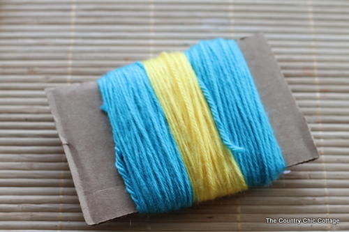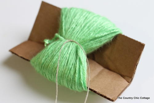 Want a stripe in the center of your pompom egg? Wrap your yarn like the picture below and then follow the instructions above.