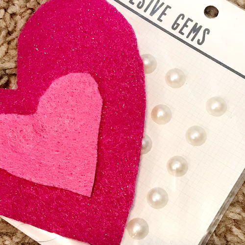 I hot glued pearl embellishments on the small hearts.