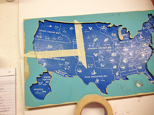 - Surface (I used a wooden map puzzle body, a cutting board, piece of plywood, etc, would work great)