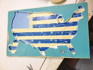 - Begin by taping off a section for the canton (upper left portion) of the flag. Use a cosmetic sponge dipped in light blue paint to apply paint to the canton area. Apply two coats, or more if needed to cover. Remove tape.