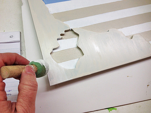 - Use a cosmetic sponge to apply light mocha paint to the exposed striped areas. Remove tape.