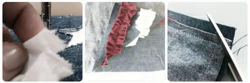 - Pin ruffles in place and attach with a standard straight stitch in matching thread color. To keep things neat, I folded under each end. Continue as needed to achieve design.