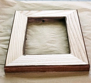 - Next, paint or stain the back of the frame, the sides and the inside. Don't stain the top. I find that the spray adhesive sticks better to the unfinished wood better than when it is painted or stained.