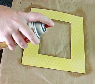 - Spray the adhesive on the backside of the scrapbook paper. Get it nice and even but not too thick. I use the regular adhesive. I don't buy the heavy duty or the fast drying kind because I want to be able to take it off if it is crooked and try again. The regular spray adhesive gives you a little bit of time to get it right before it is permanent.