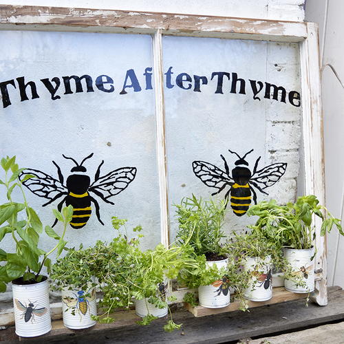 In the Designer's Words: "These gorgeous tin can herb planters are really easy to make and look fantastic in your garden with these vintage insect images. The herb planters are really convenient too as they can be taken into the kitchen one by one as needed. They also cost very little to make as you are upcycling old tin cans. The herb planters look great in my garden and are really handy as they are very easily transported into the kitchen, for cooking or cocktails. If you go to my blog you will see how I upcycled an old window to display these herb planters in the garden."