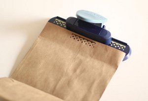 - To create a slit for the lace to pass through, I used a border punch, which adds such beauty to the bag. You can use any border punch you have in your stash, just center the bag on the punch (as seen in photo above), and punch once in the center.