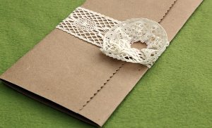 - A quick idea to make an envelope, fold some Kraft cardstock and add a scalloped edge using a paper edger. Close shut using lace, and add a lace flower.