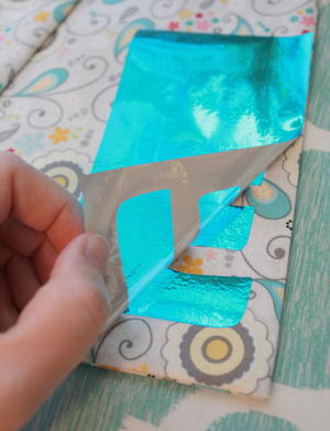 - Cut piece of Deco Foil slightly larger than letter and place over letter, color side up.