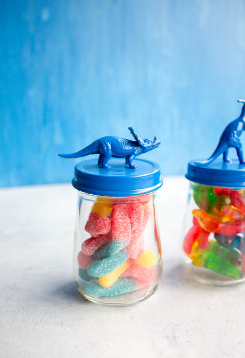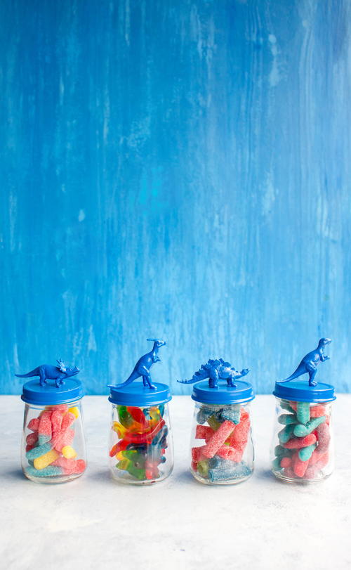 - Candy: I used gummy dinosaurs by Haribo and assorted sour gummy treats. I think gummies look nice in the jars!