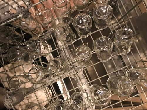 Feed your baby! Ok, so seriously, I started collecting baby food jars months ago. Cooper was still eating purees and I would feed him and then clean out the jar. It is important to sterilize the jars. I suggest soaking the jar in soap and water, removing the labels (they should come off easily and if a couple feel sticky use Goo Gone). Rinse and dry. I then put all of my jars and lids in the dishwasher. This sterilizes them.