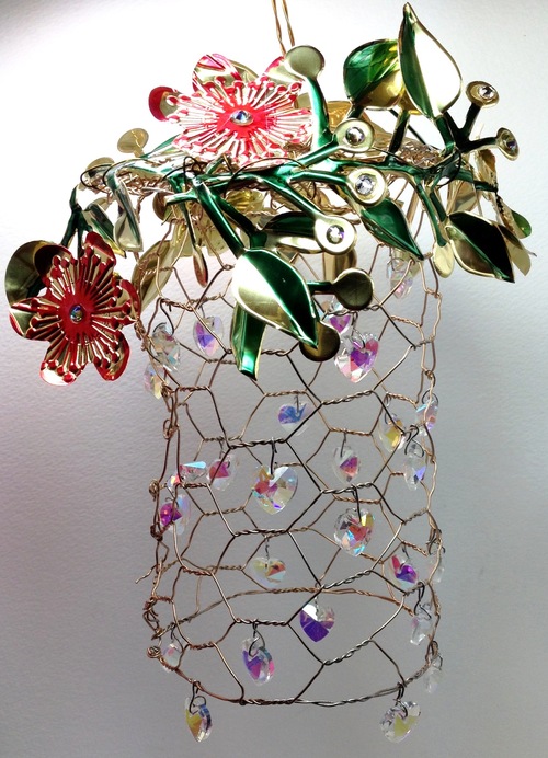 With a little bit of chicken wire, crystals and brass metal, you can create a sparking chandelier that would look great both inside and out! This thrifty project is a wonderful way to use up stuff around your home and create unique decorations that everyone is sure to love. This is a great way to reuse old embellishments or repurpose an old necklace or bracelet that broke. There's beauty in everything and with this fun and thrifty craft, you'll add style and eclectic design to any part of your home!