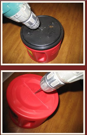 - Drill 5 holes on the cap and 5 holes on the bottom of the container.