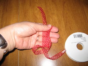 - Have a ribbon that is long enough to make 3 rounds around your 4 fingers as shown in the picture. Provide extra layer of ribbon on both ends. Carefully remove them from your fingers with your thumb holding them.