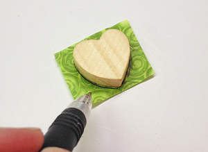 - To cut out the heart, cut inside the pen line by about 1/4-inch. This will trim it enough to fit on the heart and allow a little room for the wood to show around the border.