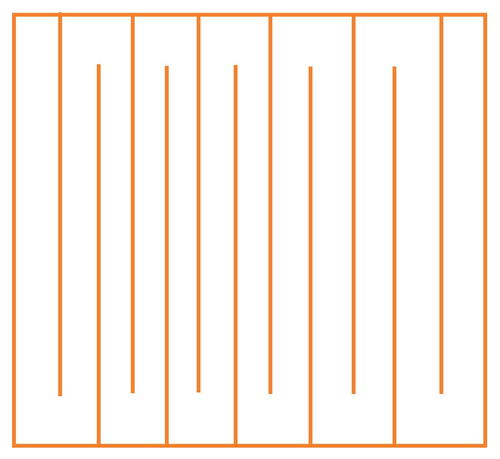 Cut the mesh produce bag into 1 1/2" strips. Note: depending on the thickness of the mesh, you may be able to keep the width closer to just 1". Use the image below as a reference for how to cut the bag to maximize your material with the fewest joins.