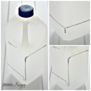 - Wash out a milk jug and remove the labels. Use some white spirits to remove any sticky residue that is left behind from the label.