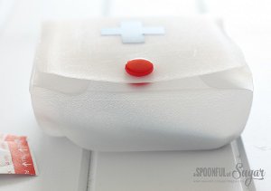 - Cut a small cross out of vinyl and adhere the cross to the top of the first aid kit.