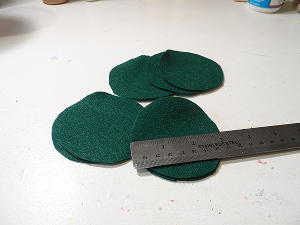 Cut the circles out of the fabric, cutting them a little smaller than the traced circle to allow for some "border" around your coasters.