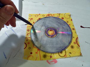 Trace a CD onto your fabric. Repeat for as many different fabrics you want to use.