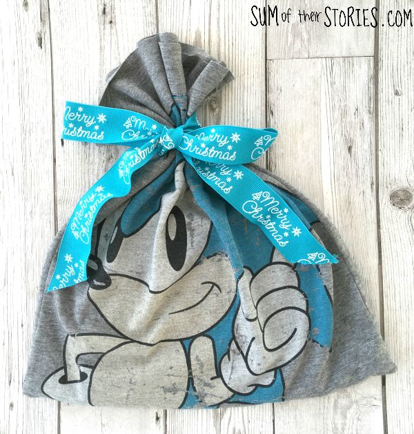 "We all use SO much gift wrap each year and so much is just thrown away afterwards. Why not be a little more eco friendly this year and make reusable gift bags by upcycling old t shirts. Even old t shirts with holes can be repurposed and easily turned into gift bags. The best news is that it is really quick and easy to do. Just make sure the recipient is on board with the reusable idea so they pay it forward and use the bag again next year. "