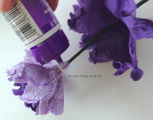 Make a hole in center of twisted paper napkin layer and insert stem, stopping about 1.5 inches from top. Add tacky glue to stem edge and grasp bottom of napkin around stem, forming flower.
