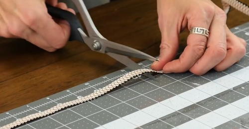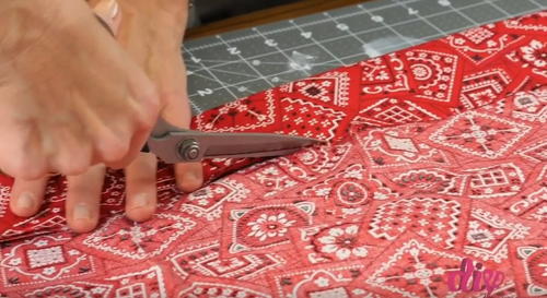 First, cut your fabric 40 inches long and 4 inches wide. The wider you cut the fabric, the fuller the scrunchie. The narrower, the thinner.