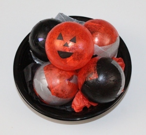 - For the last ornament, cut a pumpkin face out of tissue paper and Mod Podge it on. Sit it in the middle of your bowl.