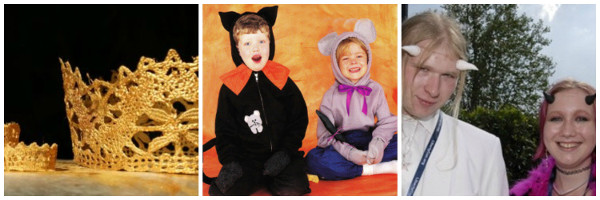 Gold Lace Crown (pg. 24) - Use lace and a touch of gold paint to create a regal "gilded" crown for a homemade Halloween costume or dress-up anytime. This beautiful crown would perfectly complete any royal homemade Halloween costumes, including princesses. Kids can help make the crown for their own costume or as a fun activity anytime. A smaller crown would work as decoration for a fairy or doll house or even as a tree ornament.