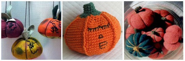 Round Felted Pumpkins (pg. 47) - Wool yarn makes these felted pumpkins a great decoration for the Halloween and Autumn season. In a few easy steps you can have these pumpkins decorate your home from head to toe.