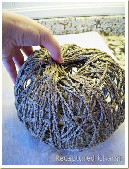 After you get the correct shape allow your project to completely dry. The twine will be very hard, and your pumpkin will have a hole at the top and bottom.
