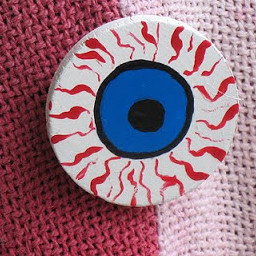 - Use Sharpie to draw a circle in the center then paint that blue, leaving the black outline around the blue. Paint a small black circle in the center of the blue one. Paint (with a toothpick dipped in red paint) bloodshot lines, or use a red thin tipped marker. Let everything dry and spray it with sealer. After the sealer has dried, glue the pin back to the back of the eyeball.