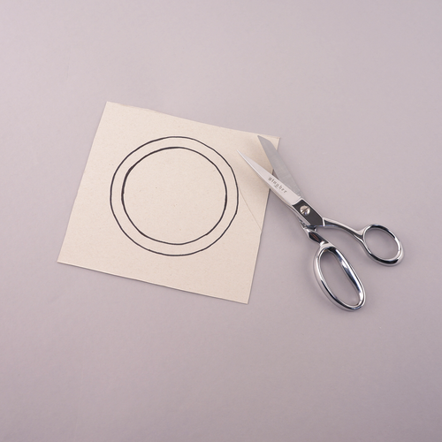 Trace a circle onto a piece of cardboard, then another one around it about one inch outside of it. This one is about 4 inches in diameter. Cut the circle out.