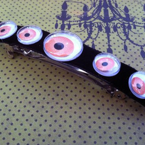 Here is a Halloween craft idea that reminds us of old cartoons where creepy eyes peek out in unexpected places. With this Scary Googly Eye Barrette, those spooky eyes can peer out of your own hair. This is an easy craft for Halloween that will only take a few minutes to create. No matter what size barrette you may desire, you can make a Scary Googly Eye Barrette that will satisfy your Halloween accessory needs. Welcome the creepy critters into your hair with this easy barrette.