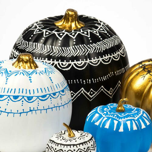 Do you love to doodle? Then you'll love these bright and bold scribble pumpkin designs. Brighten your fall decor by painting your pumpkins with a fun, unique pattern. Add lines, dots, swirls, and more to give your harvest pumpkins a twist.
