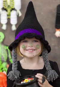 Free crochet patterns from Red Heart Yarn provide some great costume ideas. For Halloween, dress up your grandchild in this cute witch hat, complete with crochet hair.