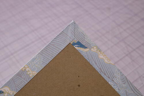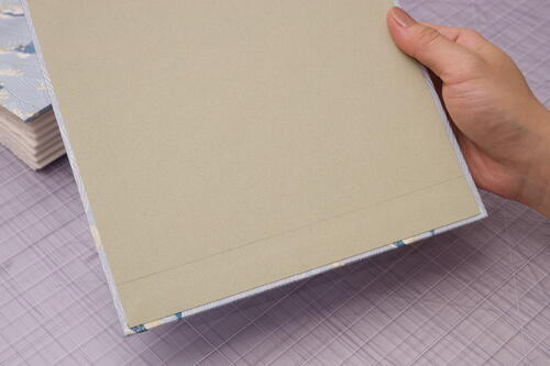 Cover the other book board with decorative paper by following steps 2 through 6.