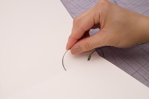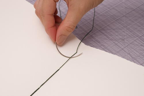 Tie a double overhand knot on one end, and thread the other end through a curved needle.