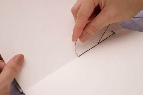 If you have a large cutting mat with grid lines, you can use the lines as a guide to tear the paper. Measure and mark where you’d like to tear and line up the long edge of the sheet to a horizontal line on the cutting mat. Line up the mark and the edge of the ruler along a vertical line. Use the top 3 inches (7.6 cm) of the ruler to match the vertical line of the cutting mat. Tear the sheet along the line against a metal ruler. -