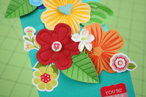 Continue adding smaller brads and paper flower embellishments in between until you have achieved the dimension and texture of the floral bouquet you desire.
