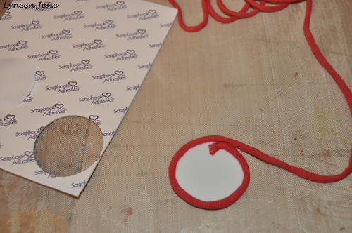 To create the flower center punch a circle from a Scrapbook Adhesive Sheet, coil the Bernat Maker Home Decor Yarn from the outside into the center.