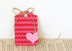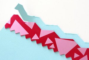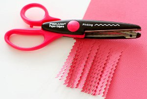 When working with small projects, such as tags, you may want to create a much smaller chevron pattern. Pinking Paper Edgers work perfectly for this.