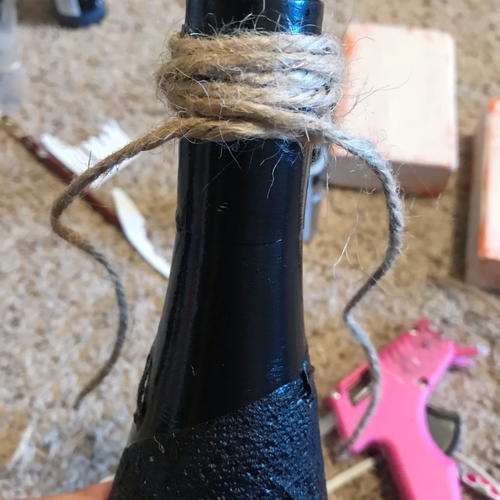 Once the bottles were painted and dry, I wrapped twine a few times around the top of the bottle.