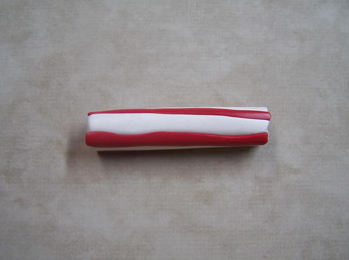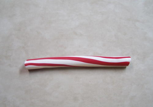 Forming log and snakes: Roll white clay into a 3” log. Roll two thin snakes and two medium snakes from red Clay (Fig.1).