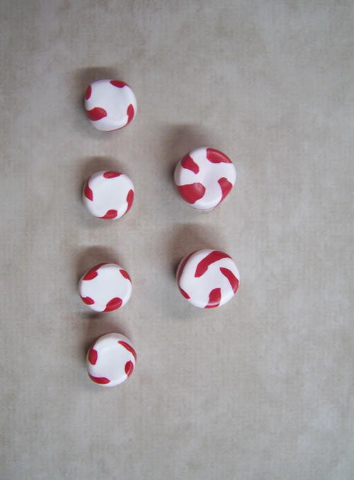 Gently roll each disc in your hands until the edges are fairly round (Fig.9). Place clay on a tile and refrigerate for 30 minutes. Chilling the clay will help to keep the red clay from bleeding into the white clay thus leaving a pink haze.