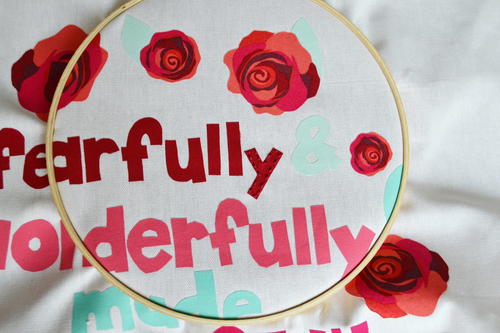 This would make a nice house warming gift. It's such an uplifting and encouraging message for everyone, especially those struggling with self esteem. I love that the words aren't exactly embroidered onto the fabric but you can still create that feel with embroidery floss. Perfect for newbies trying out embroidery.