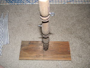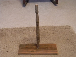 - Cut a 14-inch length from a scrap dowel or spindle. I used a recycled chair spindle. Determine which end of the dowel will be the bottom. Drill a 1/16-inch pilot hole in the bottom end of the dowel.