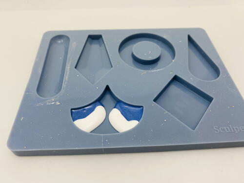 Bake the mold and allow to cool completely before handling. When the mold is completely cool, gently flex the mold to remove the baked piece. Repeat Steps 2-7 to create a second piece for the pair.
