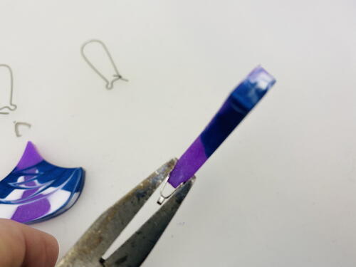 Line up the prongs of the pinch bail with the pilot holes. Use flat nose pliers to carefully pinch the prongs into the holes.