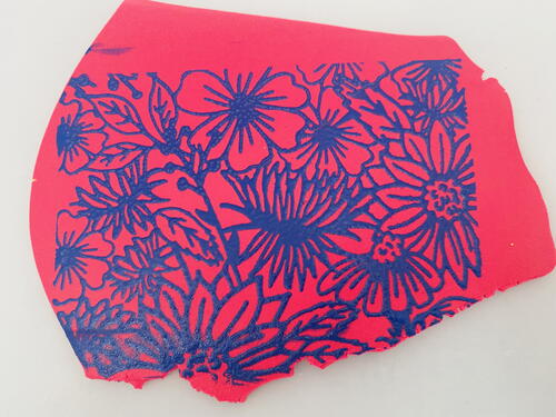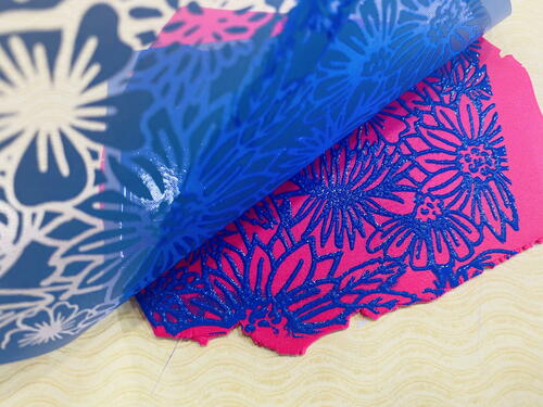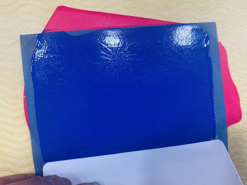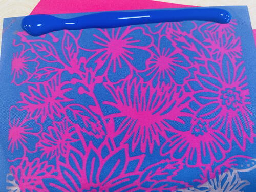 Burnish the silkscreen (shiny side down) onto the clay pressing out air bubbles with your fingertips.