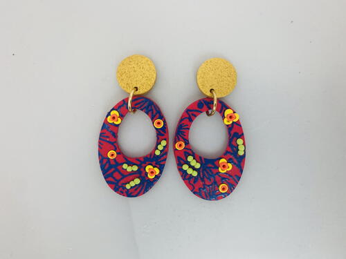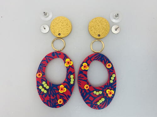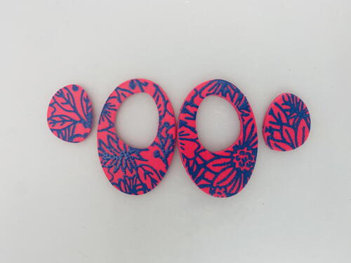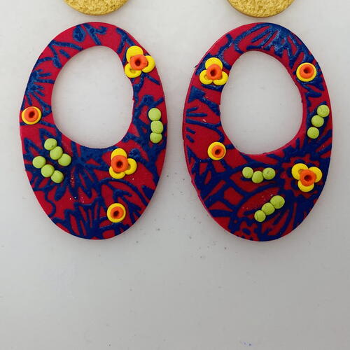 "These bright dangly earrings are sure to perk up your next outfit! They feature a super fun technique you may not have considered for your clay pieces before! Using a silkscreened image in the background of your earrings makes the perfect easy start to a little slab building technique, plus it's a fun way to add color and texture without adding too much bulk. Give these a try, they'll take around an hour from start to finish."